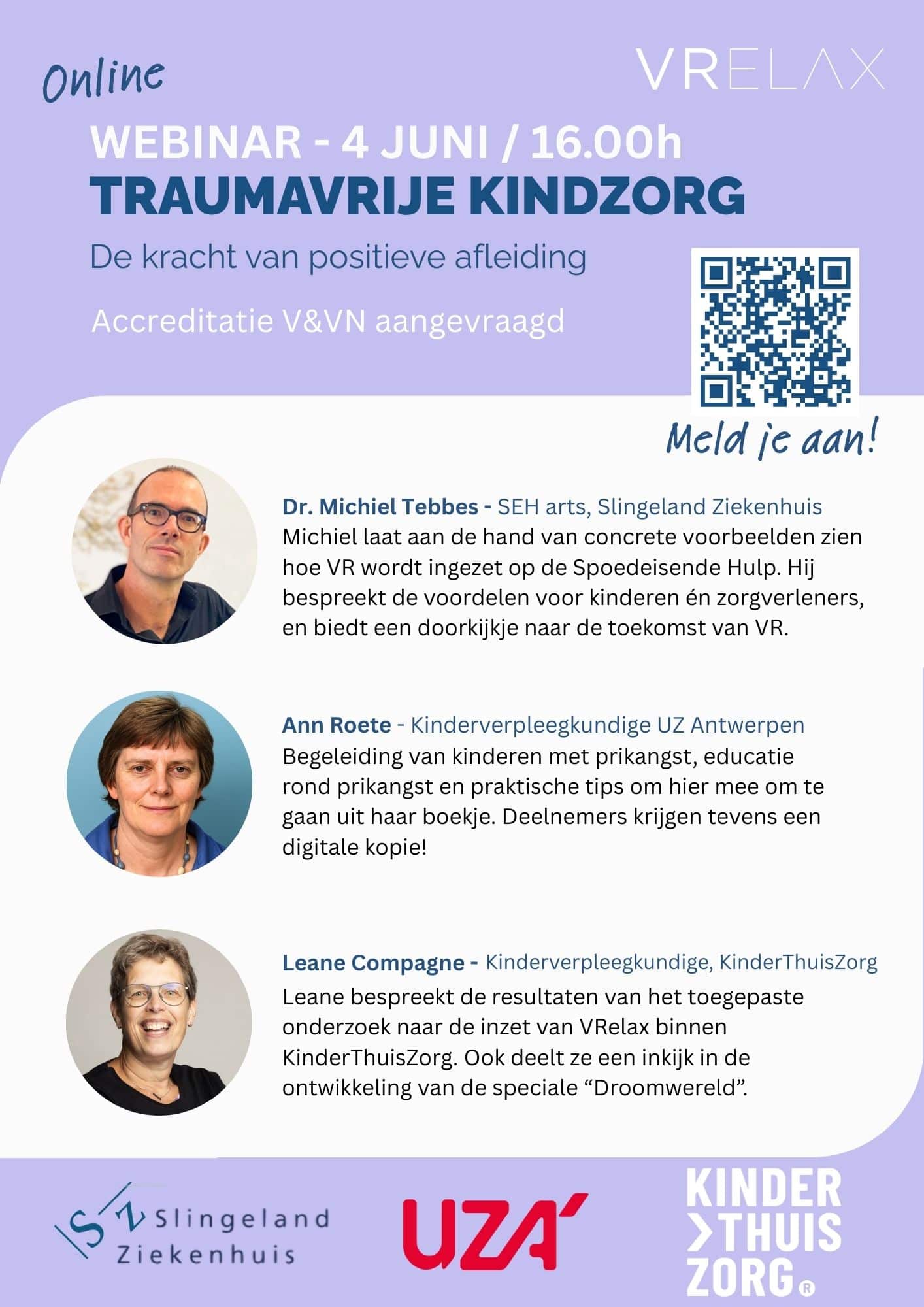 Zorgprofessionals van onder meer het Slingeland Ziekenhuis, KinderThuisZorg en UZ Antwerpen delen hun verhalen, tips en onderzoekservaringen. Je ontdekt hoe VR wordt ingezet bij prikangst, hoe kinderen thuis ondersteund worden met VR en hoe de technologie ook voor zorgverleners verlichting biedt.